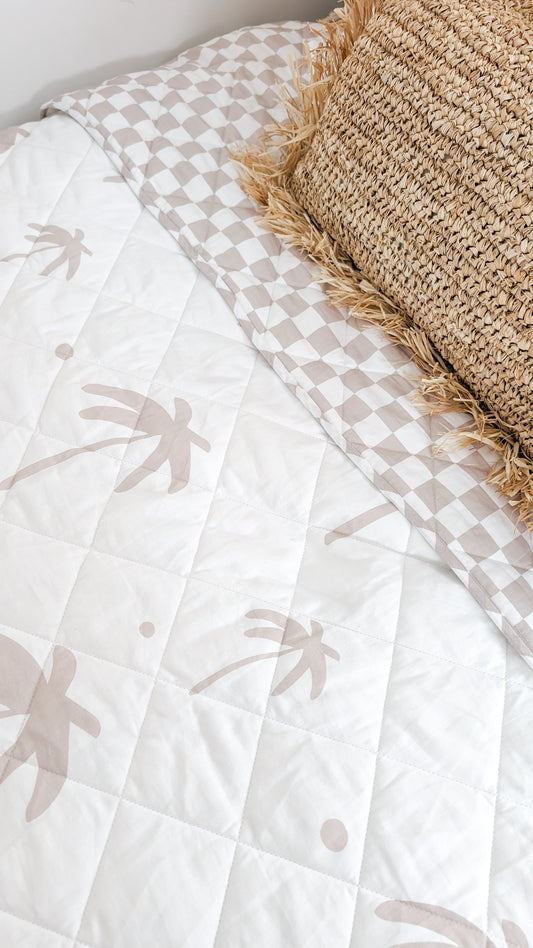 Sand Palm x Sand Checker Reversible Quilt | Organic Cotton